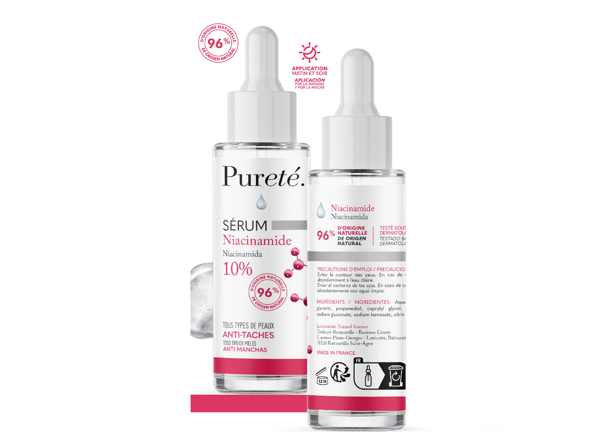 Notre Sérum Niacinamide transforme visiblement la qualité de la peau et agit pour :